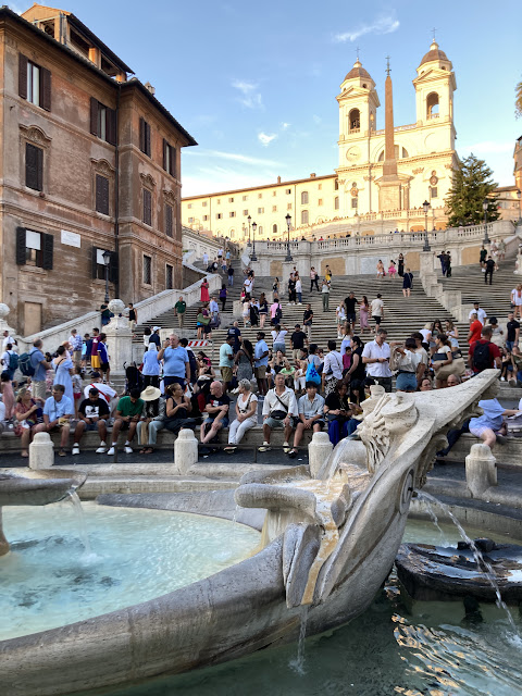tourists and locals, ending up at the Spanish Steps. The Spanish Steps were busy, but not